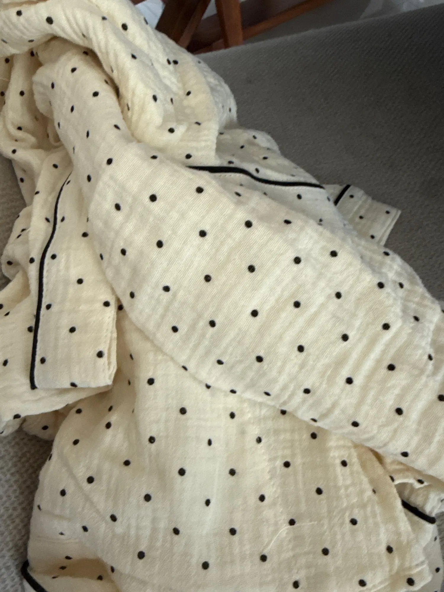 Pyjama en gaze de coton avec imprimés pois et cœur, mode printemps
