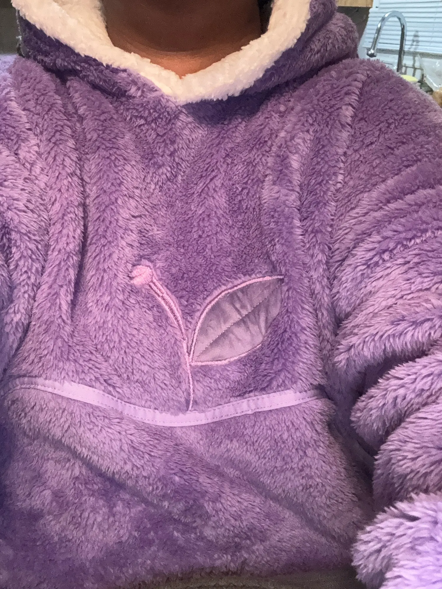 Sweat-plaid en coton polaire chaud PILOU PILOU, longueur médium, coupe oversize grande taille, 10 coloris unis design pomme, idéal comme tenue cocooning d’hiver ultra confortable pour la maison.