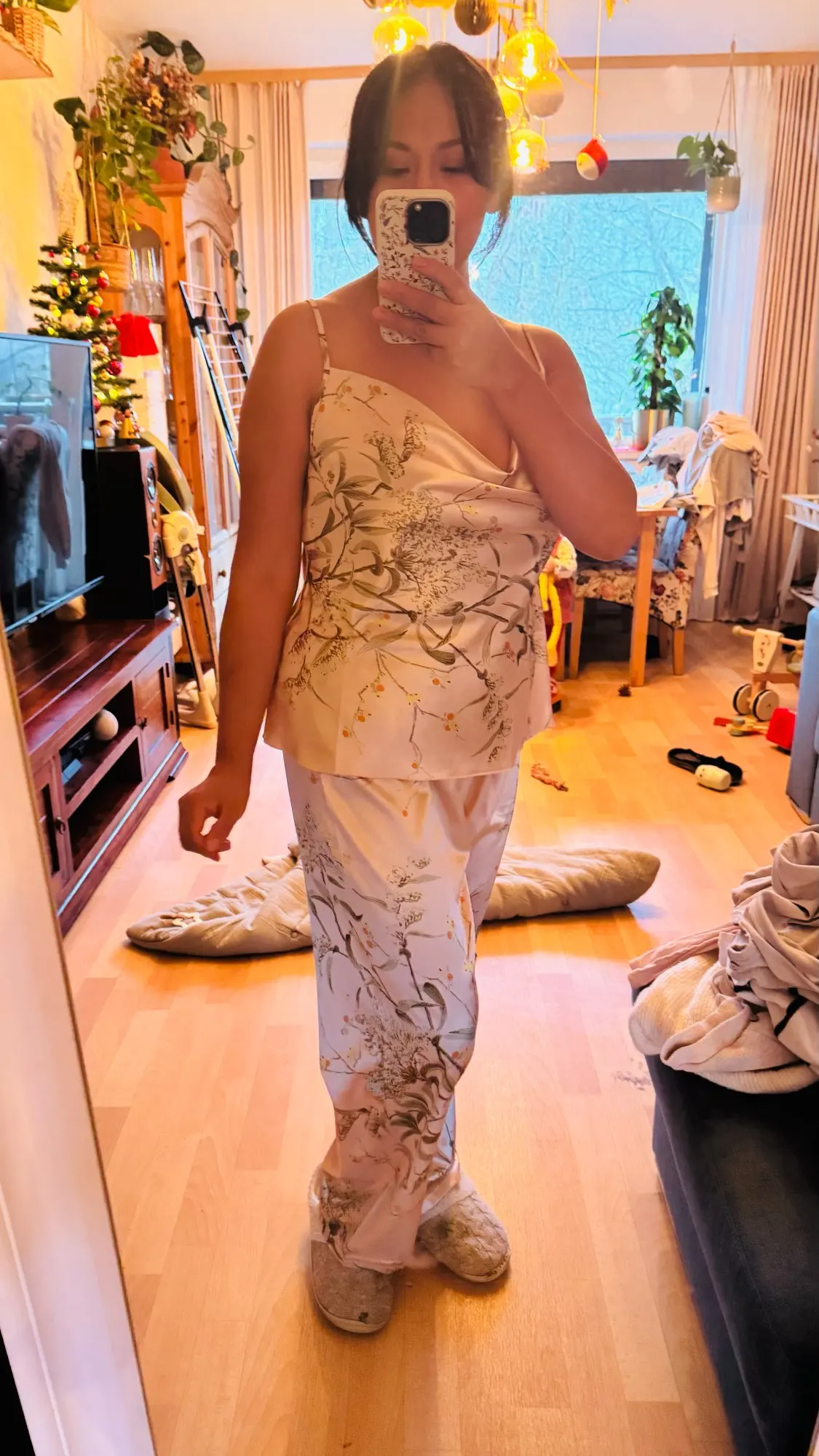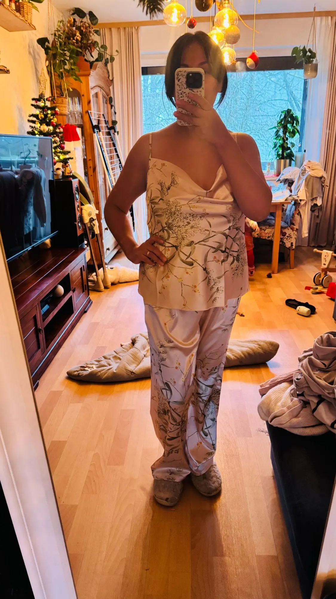 Je suis tellement heureuse et c'est l'un des plus beaux pyjamas que j'aie jamais eu 😍❤️ Je suis plus que ravie ! Merci beaucoup. Je pèse 67 kg et je mesure 1,60 m, j'ai commandé en taille L et c'est parfait. J'ADORE !