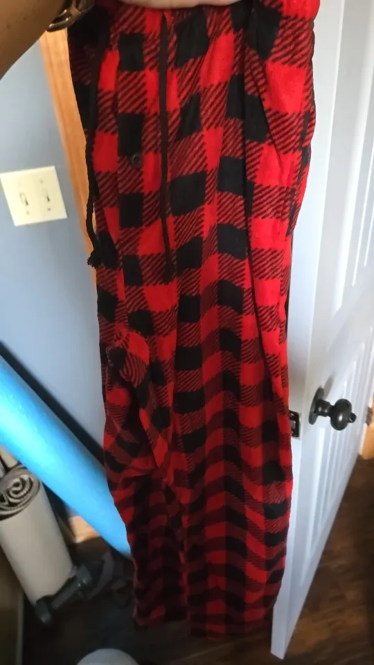 Bas de pyjama femme à carreaux rouges en plaid avec poches et cordon de serrage, pantalon de nuit ample et extensible, idéal pour vos soirées cosy.